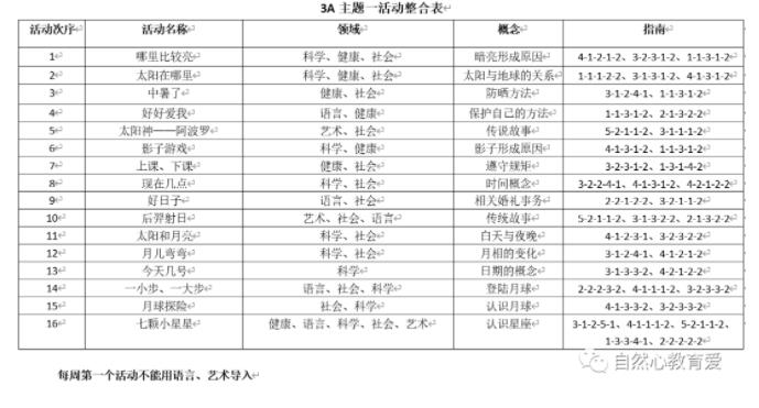 三年的完整课程规划,一年是10个主题,10个主题中,一个有生命,连着一个没有生命交替循环。