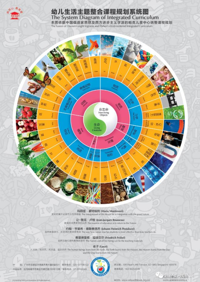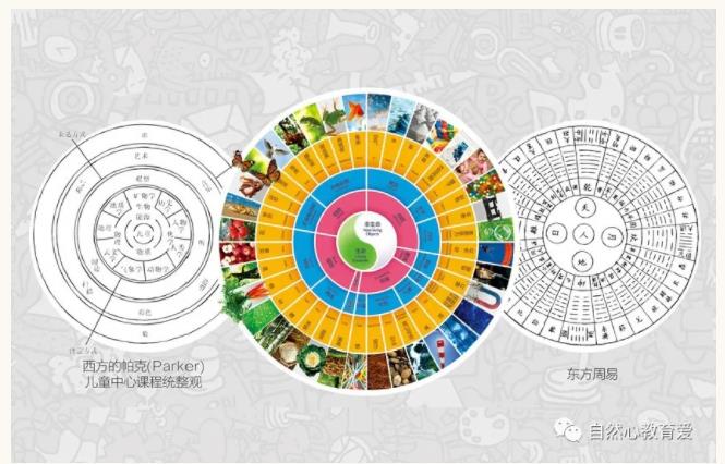 融合中西文化,以西方帕克儿童中心统整观和中国易经八卦哲学观。