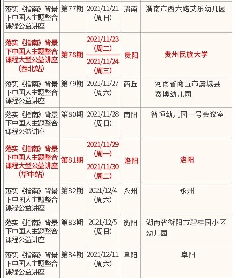 整合课程公益讲座计划安排