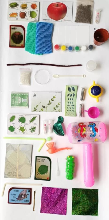 自然心教育爱每学期都准备了与主题相关联的区角操作学具。每个主题的学具依主题分别包装,方便老师、幼儿使用。
