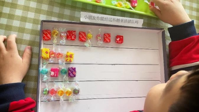 小朋友利用糖果有规律排序和数糖果(益智区)