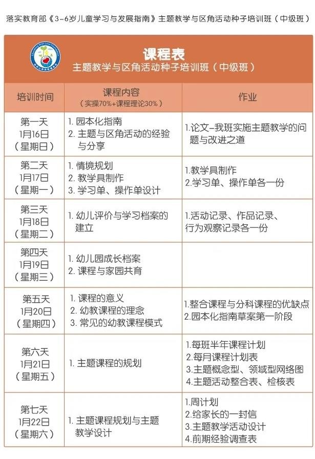 课程理论部分:让老师清楚课程模式与理念,如何进行园本化课程及班本化课程、主题课程规划与教学设计、家园共育;