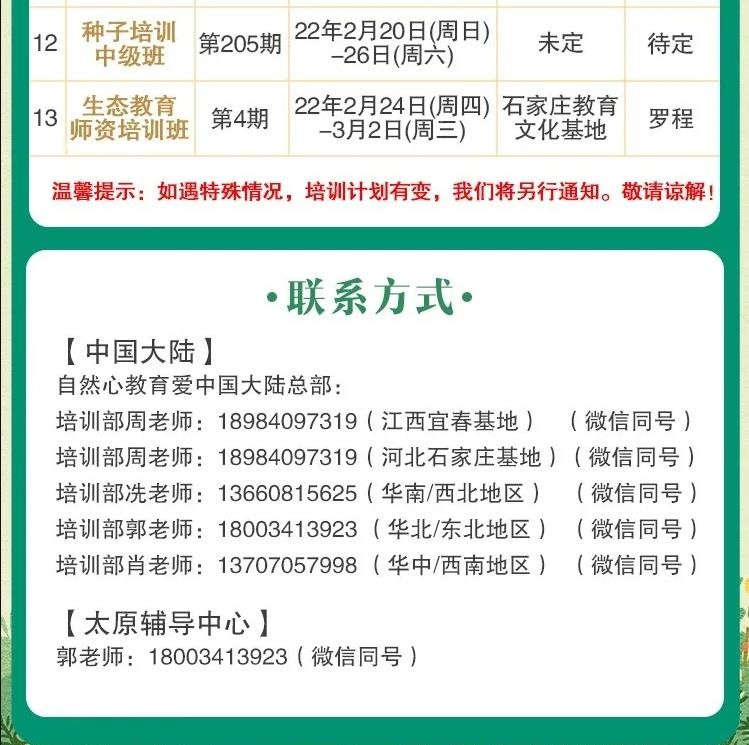 温馨提示:如遇特殊情况,培训计划有变,我们将另行通知。敬请谅解!